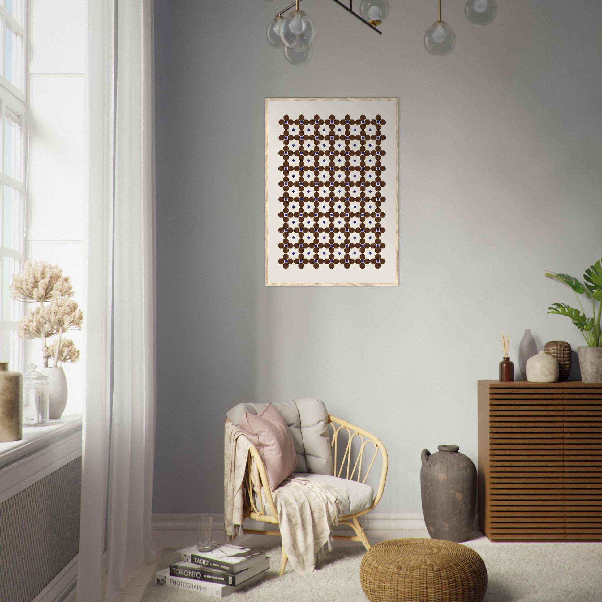 $100Elevate your space with the timeless allure of our brown geometric art print. This striking graphic illustration embodies the rich Arabic courtyard in Syria (bait Shami), designed with a modern twist. Its intricate patterns and serene blue hues create a captivating visual experience.