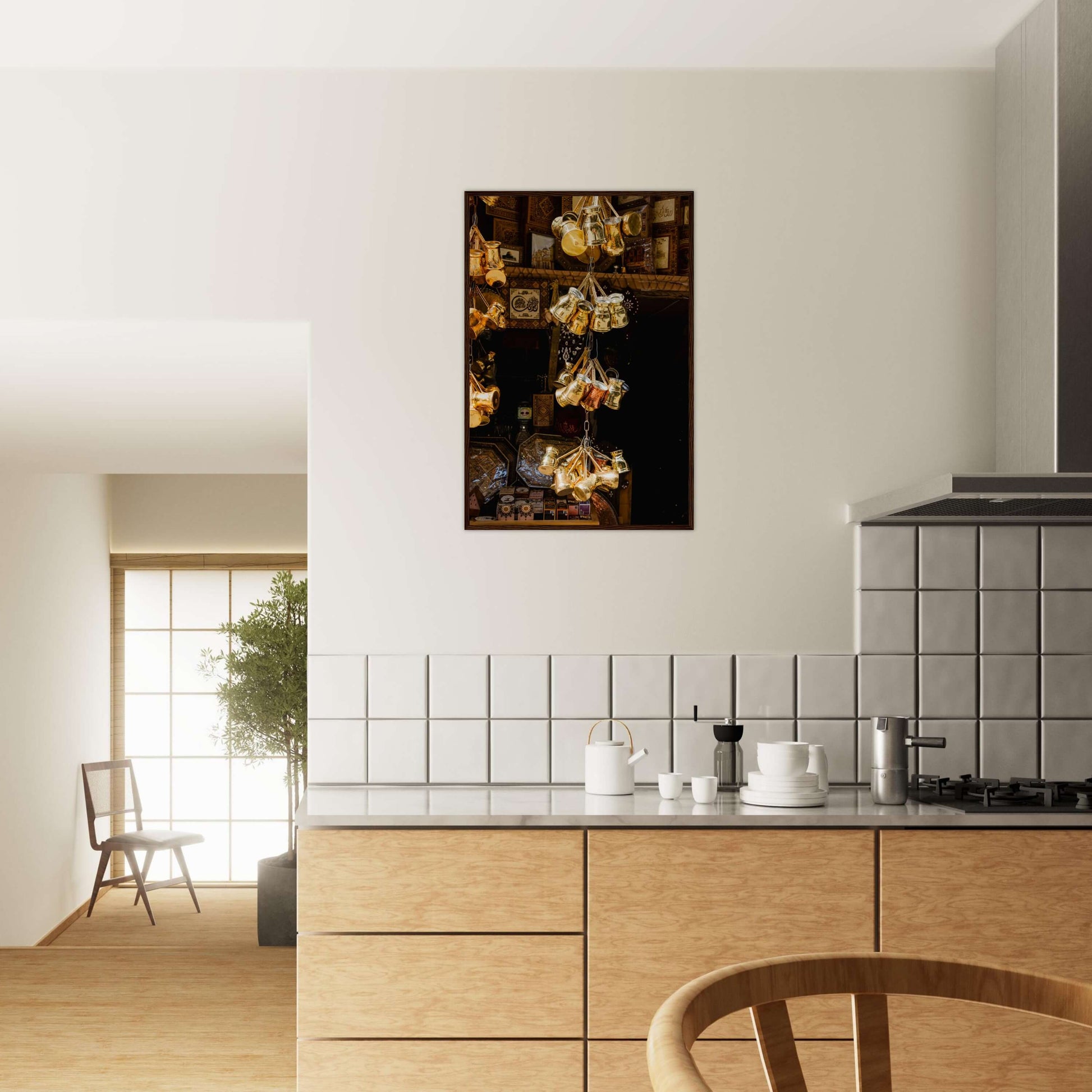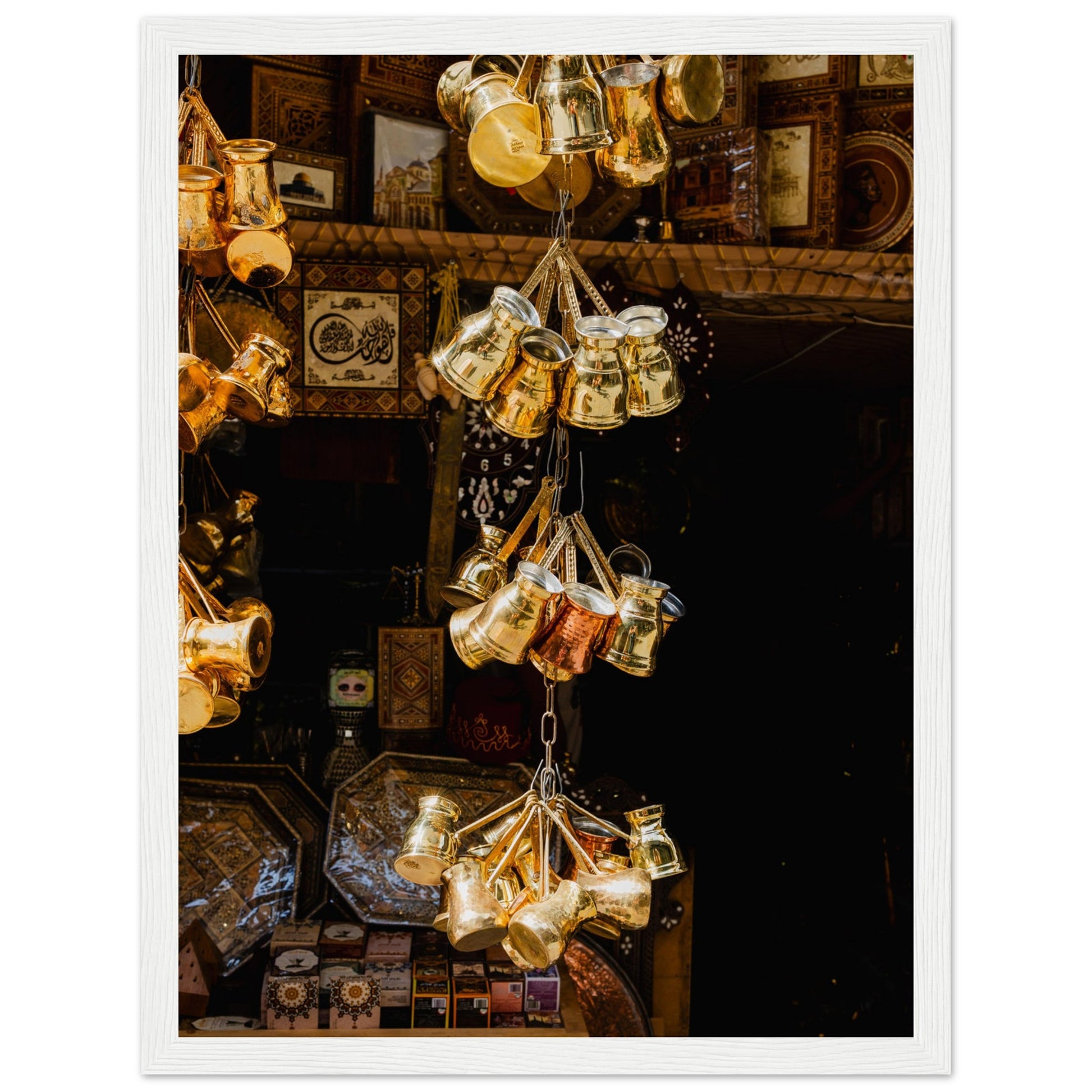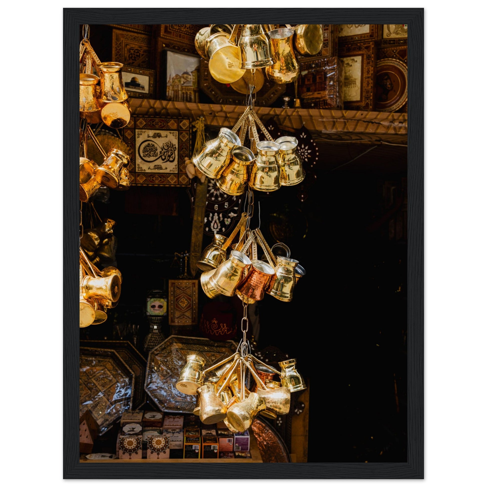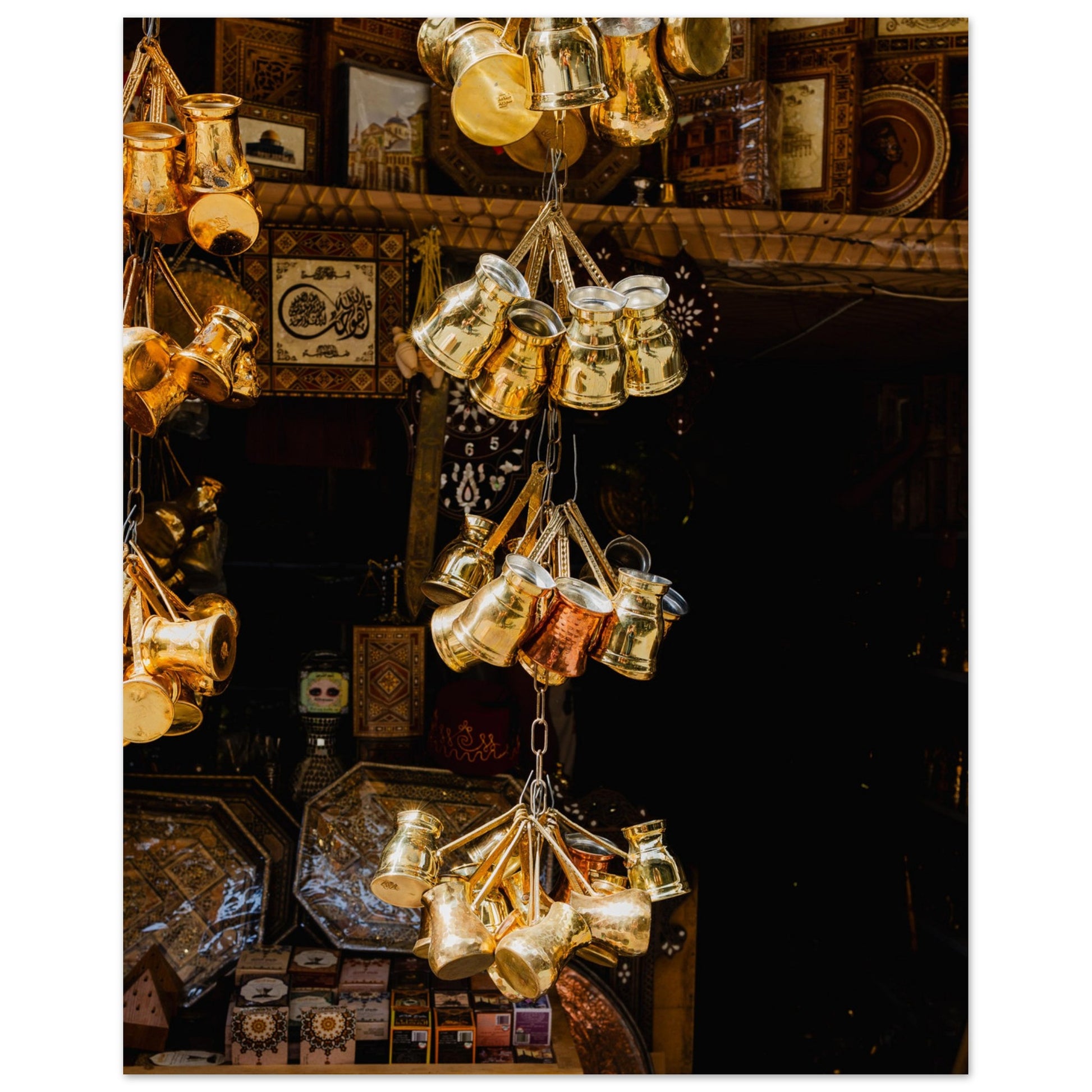 $100Step into the heart of a Middle Eastern souk with our photo art print, capturing a store where the traditional Rakweh, essential for making Arabic coffee, takes center stage.