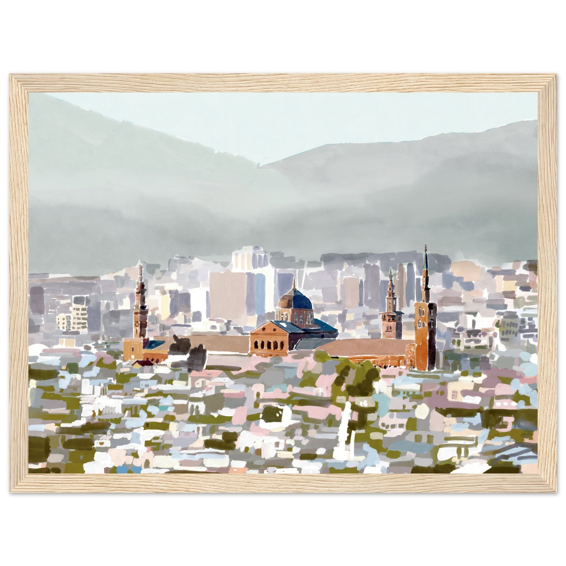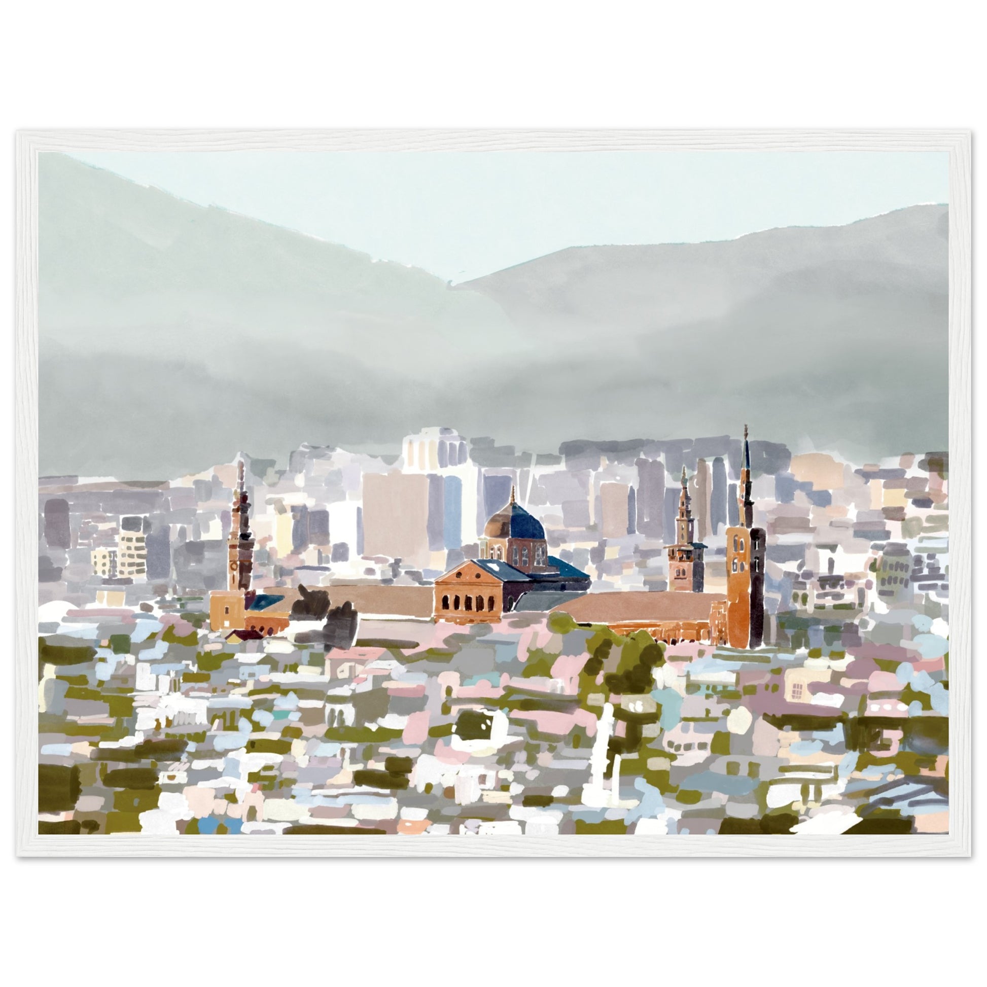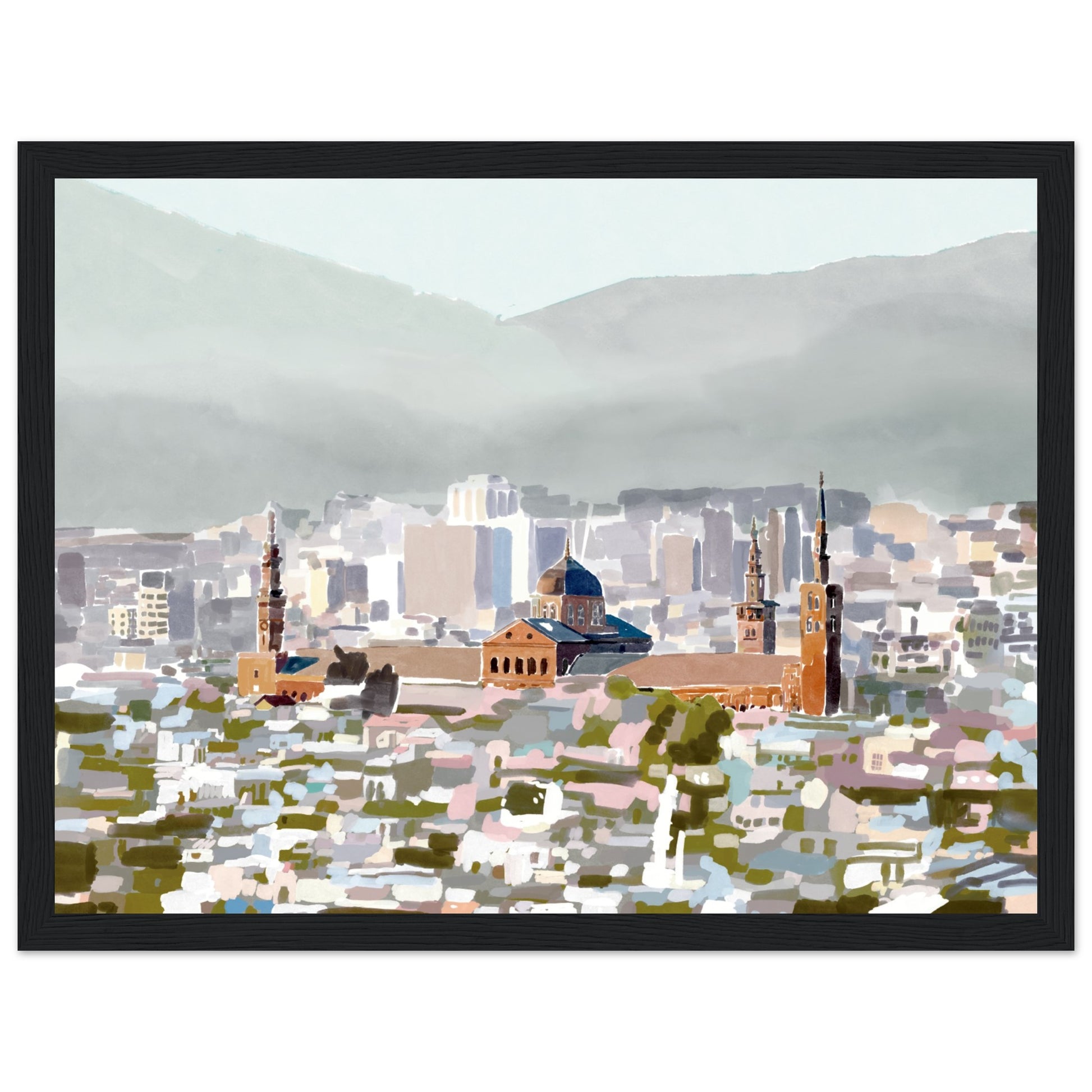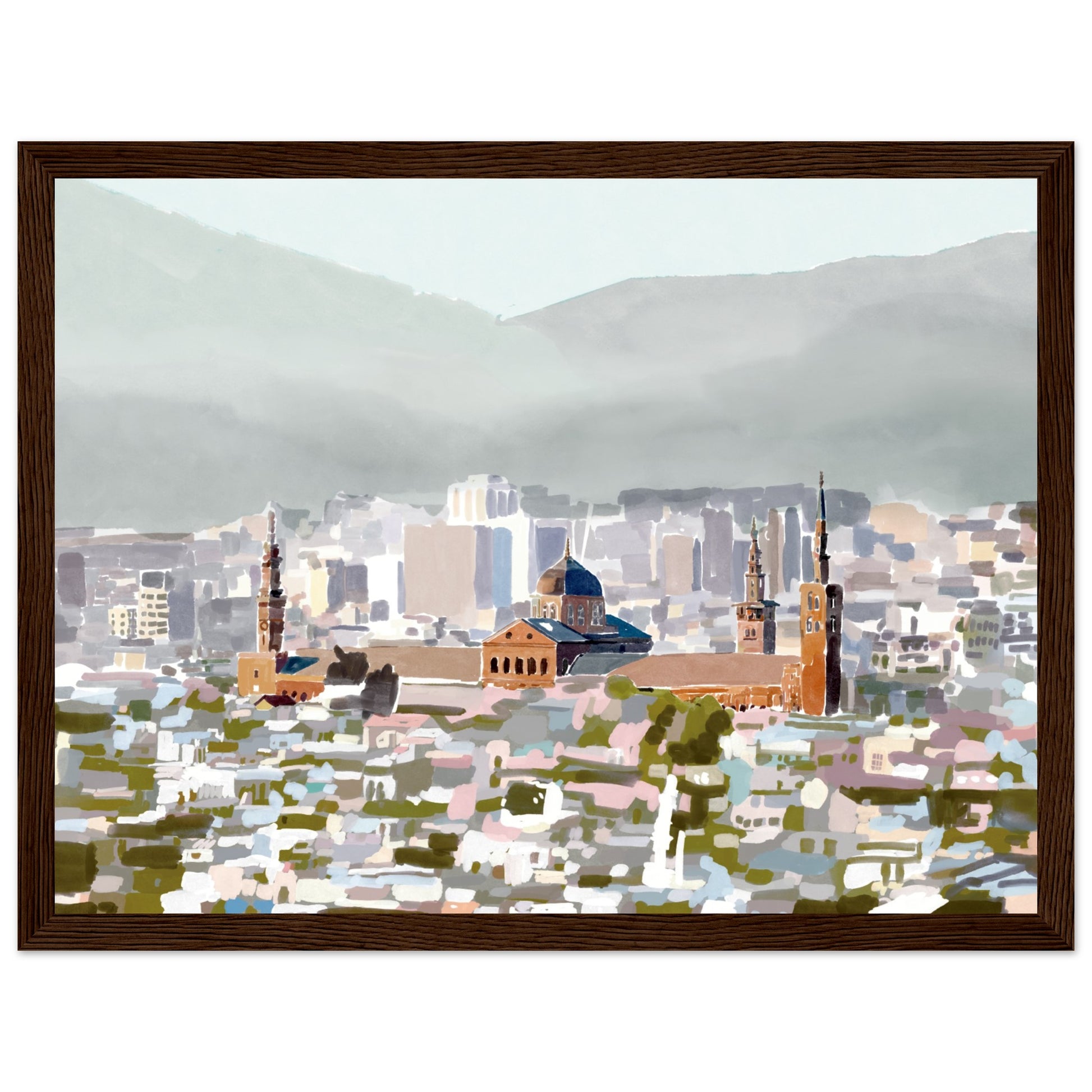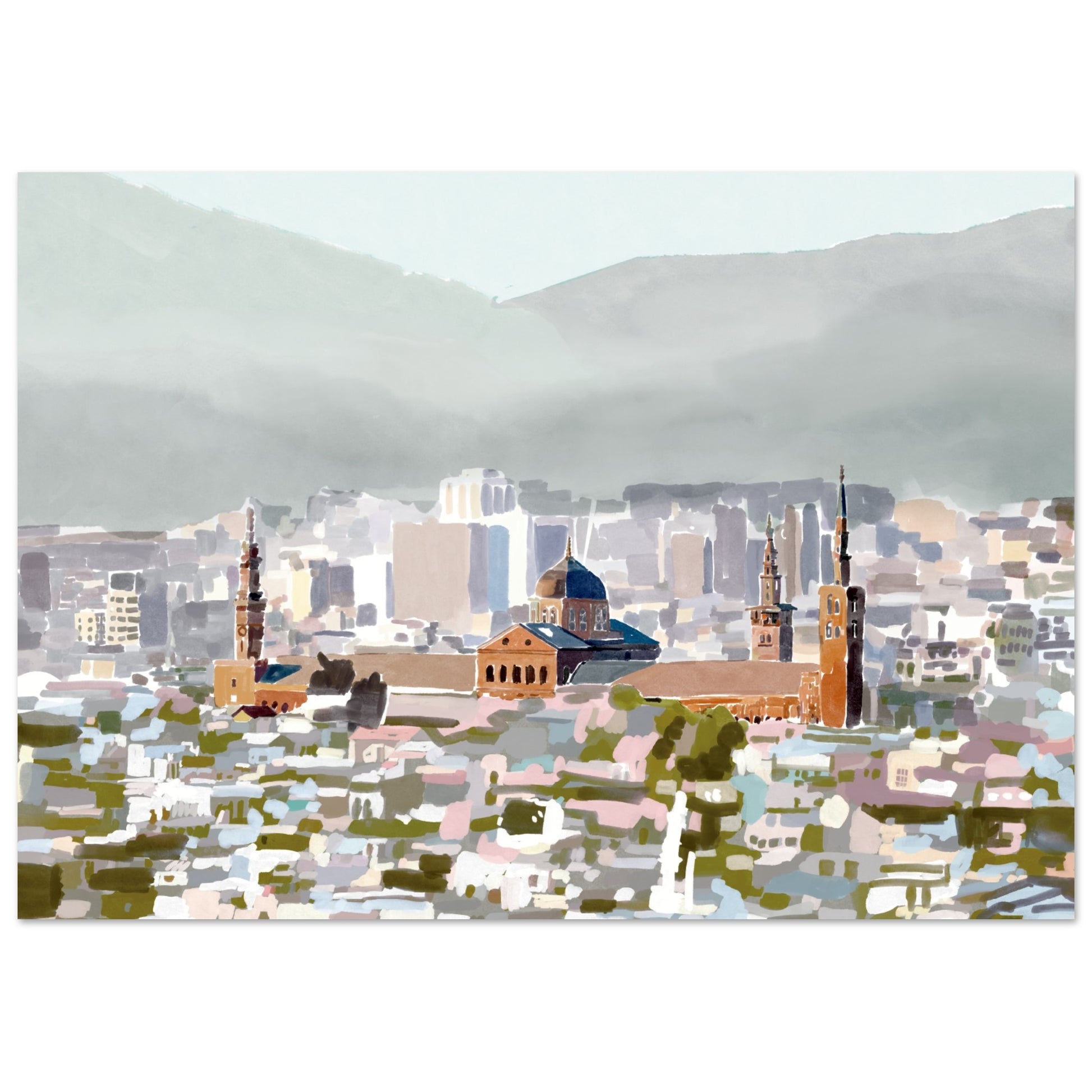 $100The serene grandeur of the Umayyad Mosque, a true icon of Damascus, Syria captued through this watercolour, abstract art piece. This art print transports you to the heart of the ancient city, where centuries of culture and faith converge in a masterpiece of tranquility.